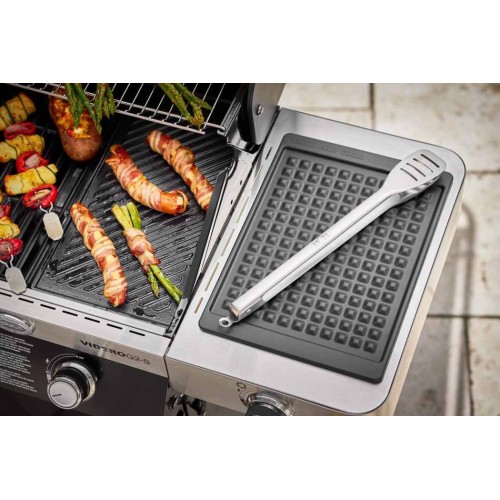 Máte už dost věčně ušpiněných odkládacích stolků grilu? Silikonová odkládací podložka je spolehlivě ochrání před mastnotou kapající z grilovacího náčiní. Podložka o rozměrech 38,5 × 27,5 cm je přizpůsobená rozměru postranních stolků všech modelů grilu Videro. Můžete ji využít také pro odložení horké pánve nebo plechu, protože spolehlivě odolává teplotám až do 220 °C. Lze mýt v myčce na nádobí.