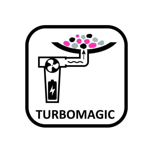 Gril má integrovaný bateriový systém TURBOMAGIC. Vzduch z ventilátoru proudí kontinuálně do dna litinového topeniště ve kterém jsou speciálně navržené kanálky tak aby bylo zajištěno rychlé a snadné zapálení dřevěného uhlí do 12 minut. TURBOMAGIC je napájen jedním nebo dvěma akumulátory LR 20 1,5V podle typu, akumulátory nejsou součástí balení.