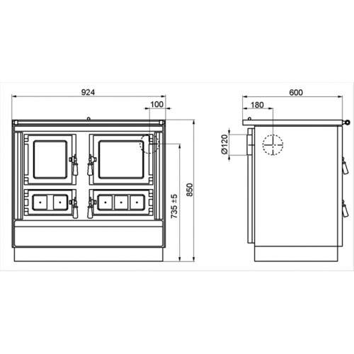 Sporák Klaudie s prosklenými dvířky topeniště a a trouby VSP 9112 šíře 924 mm