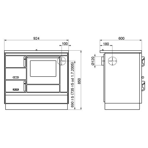 | Rozměry sporáku (šxvxh): | 924 x 850 x 600 mm |