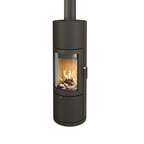 Elegantní, válcové litinové tělo vybavené decentními ovládacími prvky a velkým prosklením pro výhled na plameny. Kamna GREENA kombinují minimalistický design s funkční dokonalostí. Tato celolitinová kamna jsou k dispozici v povrchové úpravavě s vroubkovaným reliéfem připomínajícím kůru stromu. V horní části je umístěný teplovodní výměník, který je snadno přístupný k čištění.