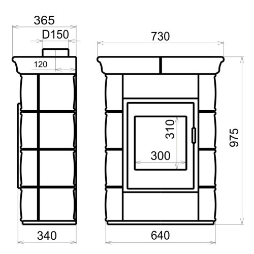 • Výška hrdla kouřovodu nad podlahou 970 mm
