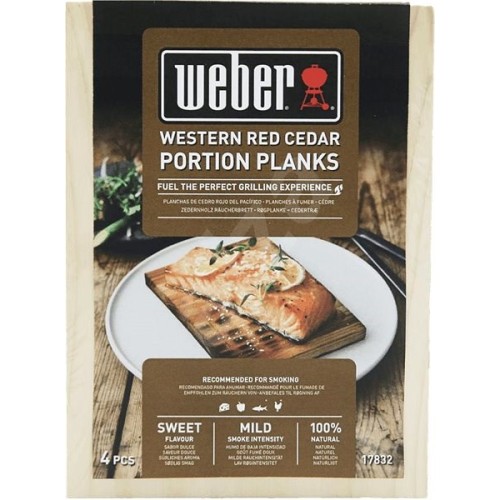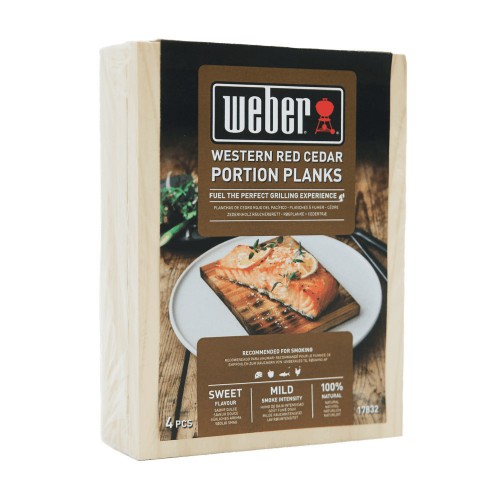 Udící prkénka ze západního červeného cedru. Tyto menší udící prkénka Weber z kvalitního cedrového dřeva (15 x 11 cm) jsou ideální pro nepřímé grilování a uzení. Dodají vašim pokrmům jedinečnou chuť a jsou skvělé pro ryby (např. lososa), maso i zeleninu. Prkénka jsou kompatibilní s většinou kotlových, plynových i elektrických grilů Weber.