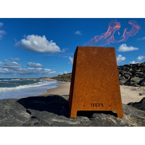 Venkovní hořák na pelety HETA Quad je nový a revoluční produkt na zahrady a terasy, který kromě toho, že je krásným kusem nábytku, může také prodloužit letní večery krásným a hřejivým ohněm. Konstrukce je z nízkolegované oceli, která postupně na povrchu hořáku vytváří patinu rzi (corten). Heta Quad je ideální na zahradu nebo terasu, kde v pozdních hodinách dokáže vytvořit světlo, sálavé teplo, atmosféru krbu a pohodu. Stejně tak je to skvělý doplněk pro přivítání hostů u vchodu do domu nebo před restaurací. Když plameny vyhasnou, následující žhavá vrstva je ideální pro děti, které si mohou péct listové těsto, připravovat marshmallow atd.