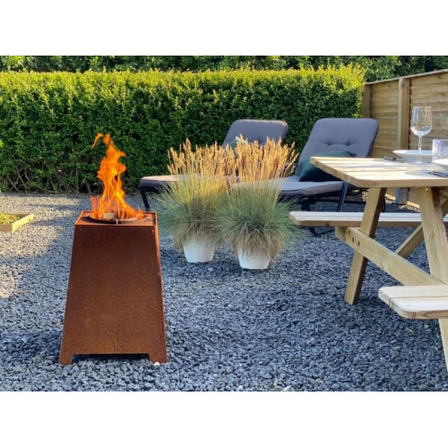 Jedná se o unikátní venkovní ohniště na pelety z nízkolegované oceli, která vytvoří na povrchu stěn ohniště originální a trendy patinu rzi.
