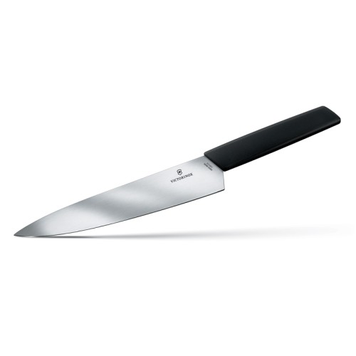Kolekce elegantních kuchyňských nožů Swiss Modern se rozšiřuje o nože s kvalitní plastovou rukojetí. Nože nabízí nejen působivý výkon, ale i vizuální potěšení, které z vaření vykouzlí zcela nevšední zážitek! Kuchařský nůž se dlouhou úzkou čepelí je vhodný k porcování vepřové pečeně, roastbeefů či steaků.