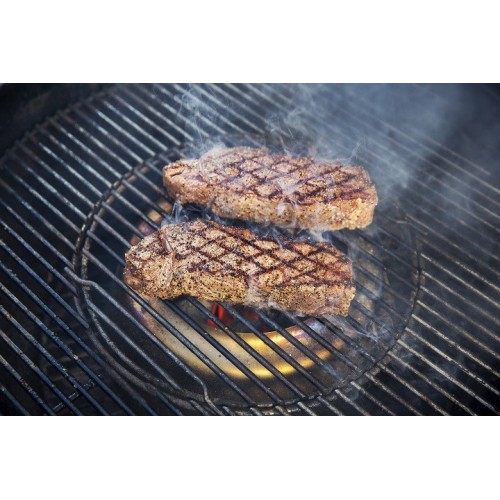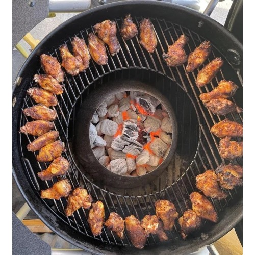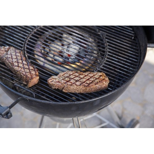 Prstencový difuzér zajišťuje rovnoměrnou distribuci tepla po celé grilovací ploše o průměru 57 cm - pro pomalou přípravu pokrmu na nepřímém žáru a při nízké teplotě (low-and-slow). Samotný kužel bez difuzéru vytváří extrémně vysoký přímý žár pro prudké grilování a opékání.