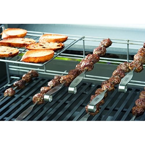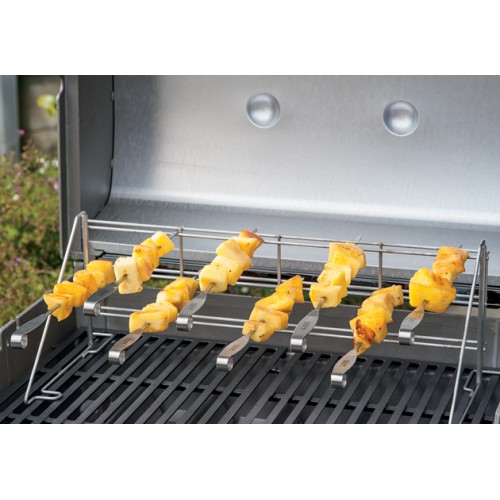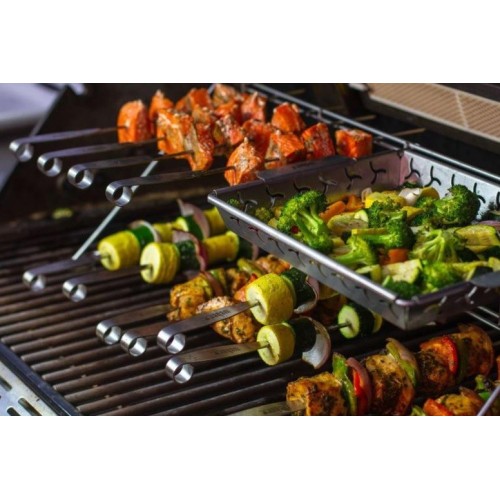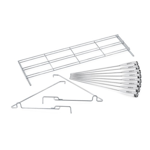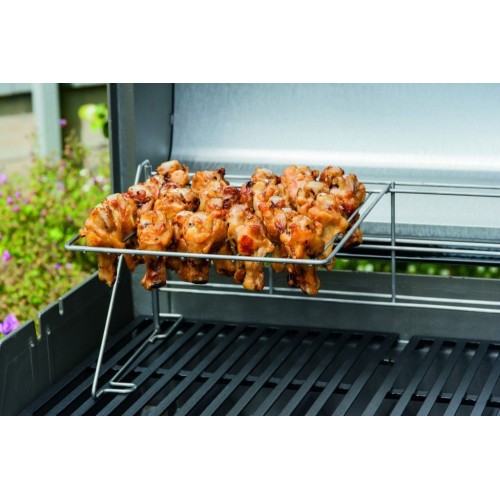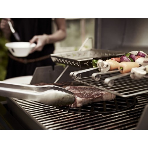 Grilujte nad grilovacím roštem. Patrový grilovací systém Elevations je speciálně navržen pro umístění příslušenství řady Weber Elevations. Patrový grilovací systém zvyšuje grilovací kapacitu a efektivnost zvednutím pokrmů, jako například špízů, zeleniny nebo kuřecích paliček nad grilovací rošt, což vytváří až čtyři úrovně grilování. Součástí je 8 kusů grilovacích špízů a stojan z kvalitní nerez oceli. Tato nerezová sada v sobě obsahuje několik chytrých vychytávek. Kromě zvětšení grilovací plochy umožňuje do systému umístit malé špízy, koš na zeleninu či třeba přídavný rošt. V systému se nachází tři úrovně, takže se na něj vlezou všechny tři možné doplňky najednou. Podle požadované propečenosti umístěte pokrm do dané výšky a nechte grilovat. Vhodné pro grily SPIRIT, GENESIS a SUMMIT.