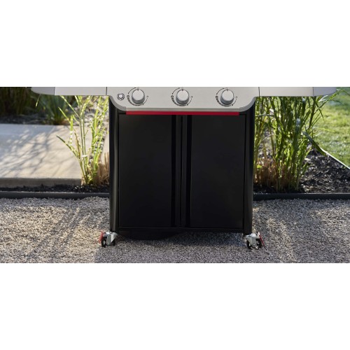 Na skladování je pod grilem praktický úložný prostor, do kterého můžete dát i plynovou láhev. Do skříňky se vejde i klasická 11 kg plynová láhev. Hadice s regulátorem pro připojení láhve ke grilu je součástí balení.