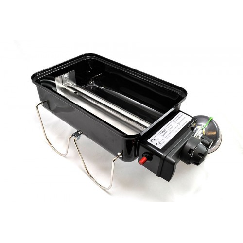 Plynový gril má úplně stejný design jako model na dřevěné uhlí. Je možno je použít prakticky kdekoliv, nebude nikoho rušit tím, že by otravoval okolí kouřem z briket. Plynový gril se připojuje k plynové kartuši, která není součástí dodávky, ale je možno je doobjednat zvlášť. Tělo grilu je vyrobeno z kvalitní smaltované oceli, která zaručuje vysokou stálost a snadnou údržbu. Na poklopu je odolné duroplastové madlo s tepleným štítem, které zaručuje bezpečí vaší ruky i při vyšších teplotách. Při přenášení slouží madlo k uchopení a při přenášení se madlo dá zachytit chytrými sklapovacími nožkami grilu. Stačí nohy sklopit, vzít za madlo a můžete vyrazit třeba do přírody. Hořáky z nerez oceli rovnoměrně rozmístí teplo po porcelánem smaltovém roštu a výkon si nastavíte pomocí plynule nastavitelného hořáku. Gril je dále vybaven systémem na zachycování tuku a grilovacích šťáv.