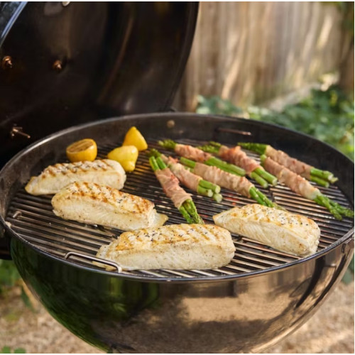 Díky vylepšeným průduchům v kotli nyní můžete na jednom grilu grilovat i udit. Navíc držák poklopu Tuck-Away a systém čištění One-Touch jsou pohodlné vychytávky pro grilování na dřevěném uhlí a váš každodenní život. Uzavřený popelník ochrání popel před povětrnostními vlivy a vy se tak o odpad z uhlí a briket během grilování vůbec nemusíte starat. Až po samotném grilování jednoduše sundáte a popel bezpečně vynesete. Tento One-Touch čistící systém také funguje jako větrací otvor, pomocí kterého regulujete přívod kyslíku do kotle grilu a tím i teplotu. K další regulaci slouží také otvory na poklopu v grilu. Výhodou grilu je také zabudovaný teploměr v poklopu grilu, nyní v novém designu. Poklop grilu je také vybaven madlem z odolného duroplastu s tepelným štítem, se kterým vám nehrozí riziko popálení. Kotel je vybaven držákem poklopu Tuck-Away, díky kterému nemusíte poklop nikam odkládat, pouze zasunete směrem ven. Háčky na náčiní najdeme na madle z duroplastu. Oproti starému modelu nedisponuje držákem na iGrill, ale držák se dá dokoupit samostatně.