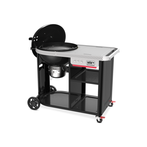 Model Weber Performer je ideální pro milovníky klasického grilování na dřevěném uhlí, kteří vyžadují komfort a pracovní prostor. Díky integrovanému vozíku už nemusíte hledat místo pro odložení talíře nebo koření – vše máte hned po ruce.
