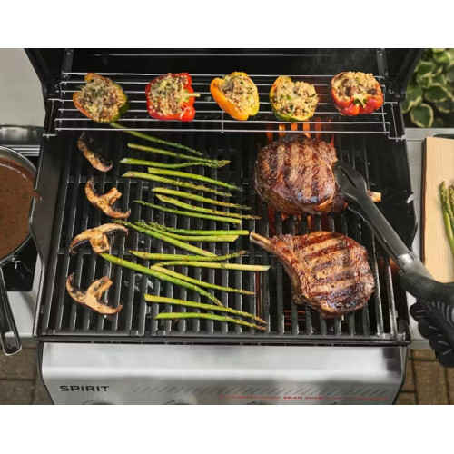 Gril je vybaven jednou kabelovou jehlou pro měření vnitřní teploty jídla, která v reálném čase monitoruje stav propečení. Aplikace vás upozorní, jakmile je gril rozpálený, kdy je potřeba jídlo obrátit a v jaký moment je připravené k servírování. Pro milovníky dokonale zatažených steaků nabízí Spirit EPX-435 specializovanou oblast Sear Zone se dvěma hořáky se zvýšeným výkonem (o 40 % vyšší výkon), která vytvoří ty nejkrásnější a nejchutnější grilovací mřížky. Navíc můžete využít postranního hořáku pro přípravu lahodné omáčky.