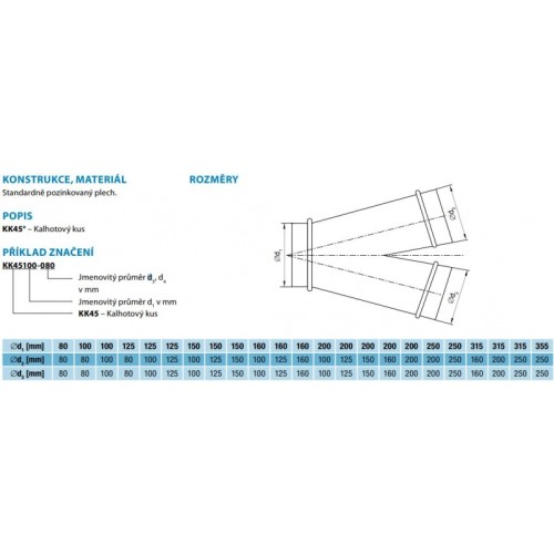 Spojka z pozinkovaného plechu pro ohebné kruhové hliníkové flexo potrubí pod úhlem 45°. Průměr potrubí: 3x160 mm