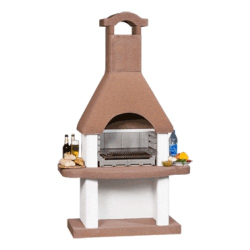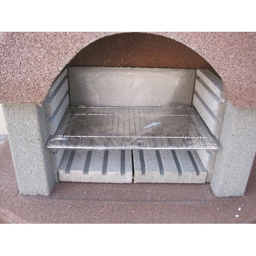 střechou, základovou a pracovní deskou. Výškově stavitelný chromovaný grilovací rošt, dvoudílná