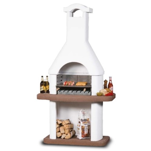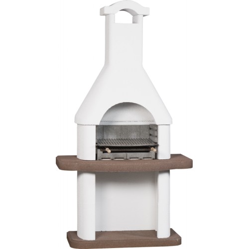 Jednoduchý zahradní krb, dodávaný jako stavebnice v provedení bez povrchové úpravy (betonově šedá barva) s probarvenou pracovní deskou a základovou deskou. Výškově stavitelný chromovaný grilovací rošt, dvoudílná deska ohniště včetně žáruvzdorné vložky. Topení dřevem je možné.