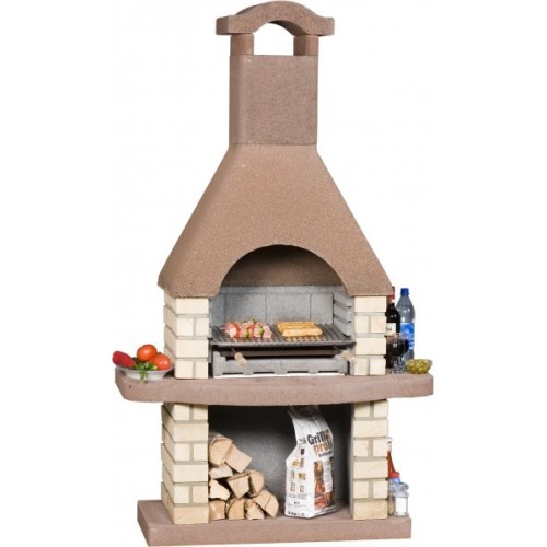 Dodáváme jako stavebnici s konečnou povrchovou úpravou, provedenou ručně osazenými mrazuvzdornými pásky z pálené hlíny. Střecha, základová a pracovní deska jsou probarveny do odstínu terakota. Výškově stavitelný biorošt z kvalitní nerezové oceli. Sada ohniště pro zvýšenou odolnost proti přetopení je součástí dodávky a skládá se ze žáruvzdorné vložky, litinového roštu a jeho betonového držáku. Topení dřevem je možné.