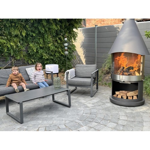 Zahradní krb FIRESTAR DN 800 SWING GLASS - 360° posuvná sklokeramická dvířka s technologií NeoClear® namísto nerezové síťoviny jako u klasického modelu DN 800 SWING.