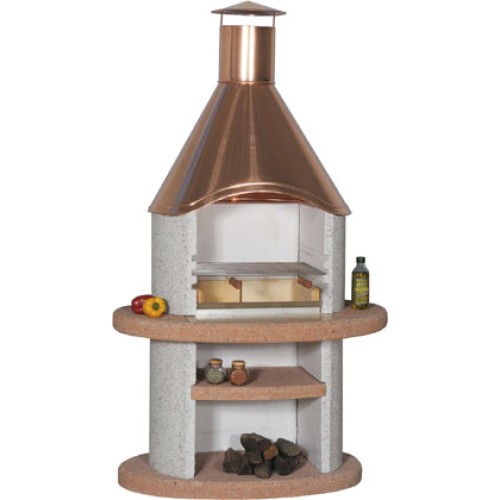 Osvědčený model Arcus v dvoubarevném provedení povrchu. Kombinace bílošedého jemného vymývaného povrchu se stejným povrchem barvy terakota a s měděnou střechou vytváří venkovní krb v klasickém tvaru, ale harmonicky sladěný s novou, moderní tváří. Základová deska již ve standardním provedení.