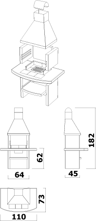 Moderně i klasicky se představuje tento krb s obloukovou přední hranou pracovní desky a se střechou z mědi, nerezu nebo černě lakované oceli. Otočný držák a závěsný rošt jako zvláštní příslušenství. Ve standardní výbavě grilovací rošt 53 x 38 cm.