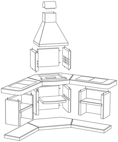 Máte-li pro zahradní krb vyčleněný rohový prostor větších rozměrů, jistě oceníte nabídku rohové sestavy zahradního krbu vycházející z koncepce typu krbu Atlantik s upravenou pracovní deskou a obohacenou o boční stoly a základové desky v odpovídajícím provedení. Zahradní krb Atlantik v Rohové sestavě lze vybavit různými typy střech včetně střechy douzovací. Získáte tak prostorný zahradní krb s udírnou .